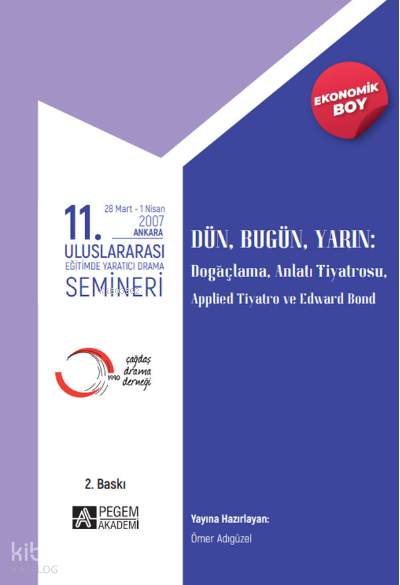 Dün, Bugün, Yarın: Doğaçlama, Anlatı Tiyatrosu, Applied Tiyatro ve Edward Bond başlıklı bu kitap, “Dün, Bugün, Yarın” başlığı ile 28 Mart - 1 Nisan 2007 tarihleri arasında Ankara’da gerçekleştirilen 11. Uluslararası Eğitimde Yaratıcı Drama Semineri’nde yapılan konferans ve atölye çalışmalarından oluşturulmuştur. Seminerin amacı hem eğitimde drama alanında geçmiş, bugün ve geleceği konuşmak hem de bu alanın geleceğinde daha fazla yer alacağını düşündüğümüz yeni kavram ve yaklaşımları tanımaktır. ...