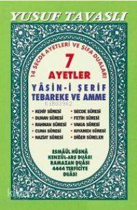 Bu kitabımız cep kitabıdır. Cepte ve çantada taşınabilir. (Kod:B 16) bunun büyük roman boyu da geçti. Orada gereken bilgi verildi. Oraya bakılabilir. 7 ayetler cep kitabımız 320 sayfadır. Bu kitabımızda, özel olarak okunan âyetler; 7 âyetler, Şifa âyetleri, 14 Secde âyetler, 4444 duâsı olan Salât-ı Tefriciye gibi âyetler vardır. Kitabımızın kapağına bakarsanız içeriğini göreceksiniz. Ayrıca pek çok çeşit duâ vardır. Görüp bakmanızı öneririz.